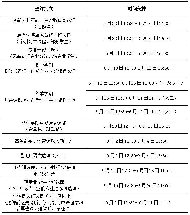 为更好完成2019-2020学年夏季、秋季学期选课工作,现将5月—10月期间选课时间预告如下,每批次选课前还将发布正式选课通知,如有时间不一致,以具体选课通知为准。请各位同学们根据选课安排做好学习规划。