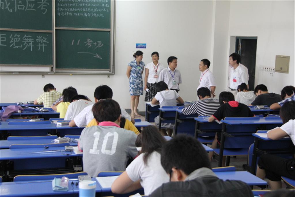 考试期间教务处张华处长在工作人员的陪同下检查考试工作,对考试组织安排、监考人员到岗和履职情况、学生应考状态和考场秩序进行详细检查。整个大学英语四六级考试和高校英语能力应用考试开展顺利,考场秩序井然,学生考风良好。在全体监考老师和考务人员的共同努力下,我校考点考试工作顺利完成。