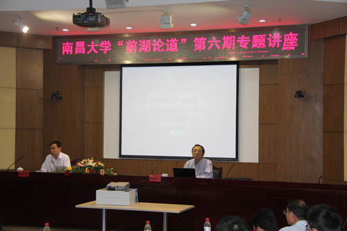 6月27日下午,办公楼一楼报告厅座无虚席,香港城市大学中国文化中心主任、"大学文康委员会"主席、耶鲁大学历史学哲学博士郑培凯教授座客"前湖论道",与来自学校各部门、各学院的师生畅谈"中国文化与通识教育——如何培养香港与江西大学生"的话题。讲座由朱友林副校长主持。