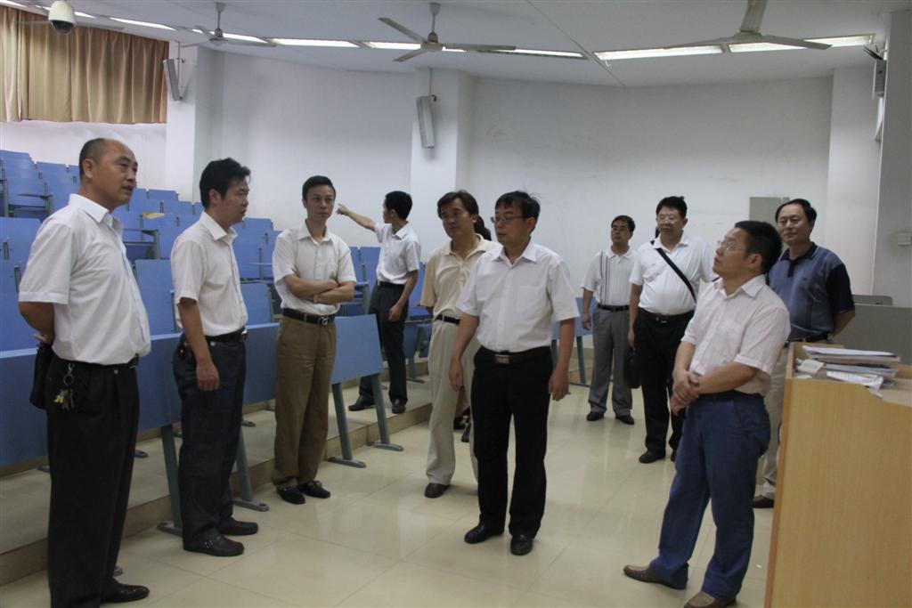 8月30日上午,朱友林副校长带领教务处、后勤管理处、教学督导与评估办公室、现代教育技术中心、后勤服务集团等部门负责人,视察前湖校区各教学楼,对暑期教室维修情况、教学设施和环境卫生情况进行实地考察。