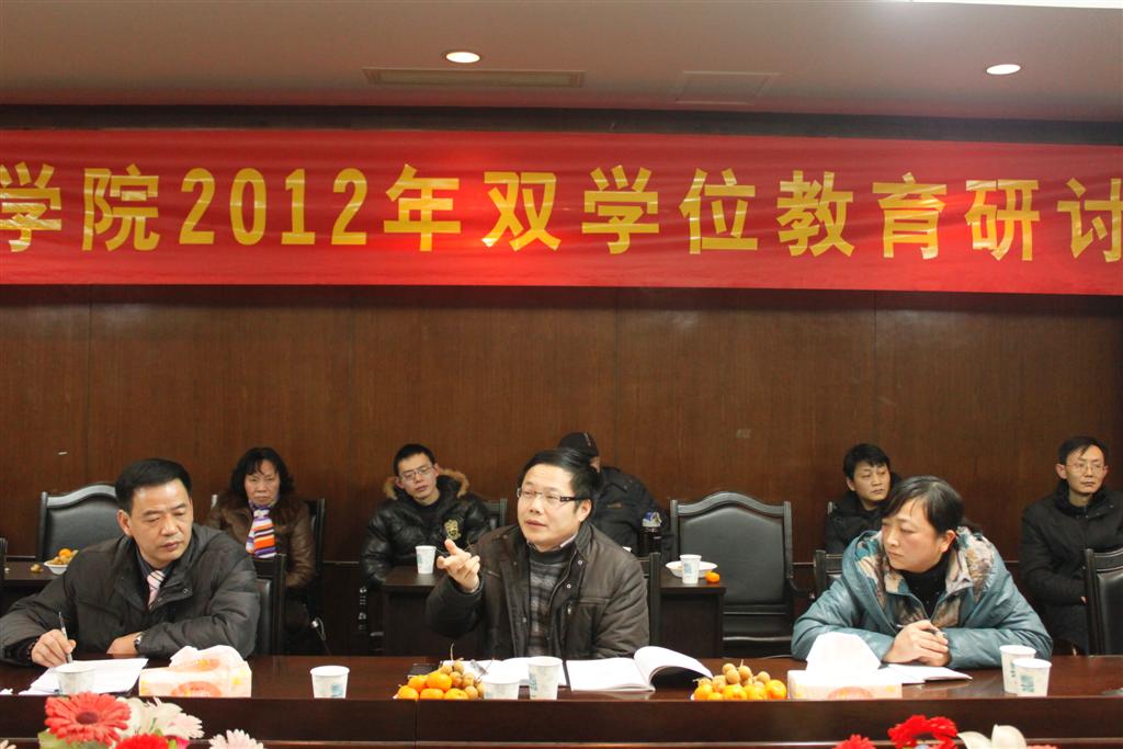 何筠院长在认真听取与会人员的想法后,作了讲话。何院长指出,在今后的双学位教育中,要进一步强化责任感,重视双学位的培养。学院要进一步完善双学位课程、课时安排,提升双学位的培养方案;建立双学位任课老师的选拔制度,任课老师可以在全院选拔,也可面向全校;加强班级制度管理,如增设学习小组,培养学生的班级归宿感;改进教学方法和教学手段,有针对性的讲解,探索合理的教学方式。