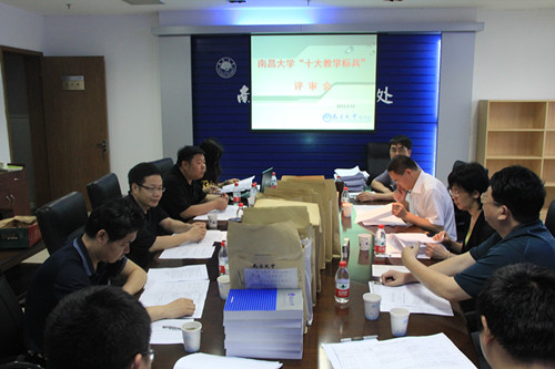 5月12日,南昌大学2012年度"十大教学标兵"第一轮专家评审会在办公楼101会议室召开。专家组在认真审阅参评教师的教案、讲义、课件、个人业绩证明等申报材料后,遴选出40名教师为南昌大学2012年度"十大教学标兵"的侯选人。为了保证评审专家全面地掌握材料,教务处、现代教育技术中心等相关科室工作人员也在现场提供了原始资料的核实服务。校纪检监察部门对评审进行了全程监督。