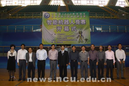 2012年10月21日上午8点,江西省2012年大学生智能机器人竞赛开幕式在南昌大学前湖校区隆重举行。省教育厅洪三国副厅长等领导,南昌大学朱友林副校长,以及参赛队员和观众共300余人出席开幕式。开幕式由南昌大学教务处张华处长主持,朱友林副校长代表学校致辞,他介绍了我校开展大学生科技创新活动及参加技能竞赛的相关情况,强调了学科竞赛在人才培养方面的积极作用并祝愿所有参赛队员取得好成绩。最后,江西省教育厅洪三国副厅长宣布竞赛开幕。
