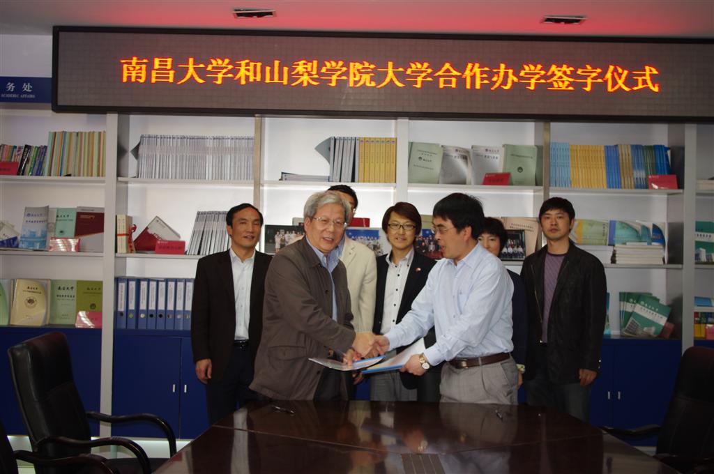 多年以来,山梨学大和我校一直保持着良好的合作交流关系,双方师生通过互派活动,取得了丰硕成果。至今我校已向山梨学大派出8批次学生进行为期半年左右的短期留学。日本的短期留学活动也给我校学生专业知识的学习和视野的开拓带来了很大的帮助。此次两校合作办学协议的签订,将会为学生创造更加良好的学习环境。日语专业学生可以通过"2+2(国内两年,国外两年)"的学习形式,选择自己希望的专业就读。在取得规定学分的前提下,毕业时可分别获得南昌大学日语专业学士学位和山梨学大现代经济学部相关专业学士学位。