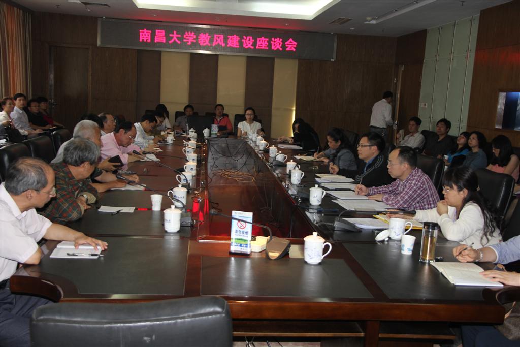 2014年5月19日下午3点30分,南昌大学教风建设座谈会在第三会议室召开,会议由教务处张华处长主持,参加本次会议的有朱友林副校长、校工会、人事处、教务处、学生工作处、教学督导与评估办公室负责人,教学督导代表、学院教学院长及教师代表。