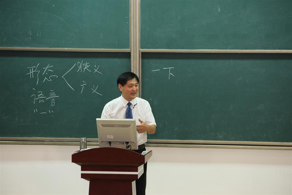2014年10月14日上午8:00,在教学主楼244教室举办了第一期教学名师大讲堂。本次名师大讲堂由“全国优秀教师、国家精品视频公开课《现代汉语与社会生活》及国家精品资源共享课《现代汉语》负责人徐阳春教授开讲,我校2014年新引进教师36人和对外汉语121班43人参加。校党委书记胡永新在教务处的陪同下亲临现场进行了全程两节课的观摩,课间还与徐阳春教授就课堂教学进行了交流。