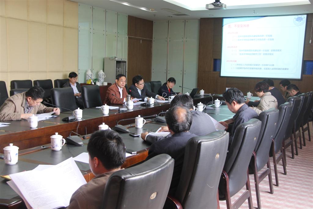 2014年11月6日下午,南昌大学本科教学评估工作领导小组工作会议在行政楼第四会议室召开,会议由副校长朱友林主持。党委(校长)办公室、团委、发展规划与学科建设处、人事处、计划财务处、教务处、学生工作处、招生与就业工作处、国际合作与交流处、资产管理处、教学督导与评估办公室、图书馆、现代教育技术中心、信息化办公室、校友(董)会工作办公室、医学部、体育运动委员会等部门主要负责人参加了会议。