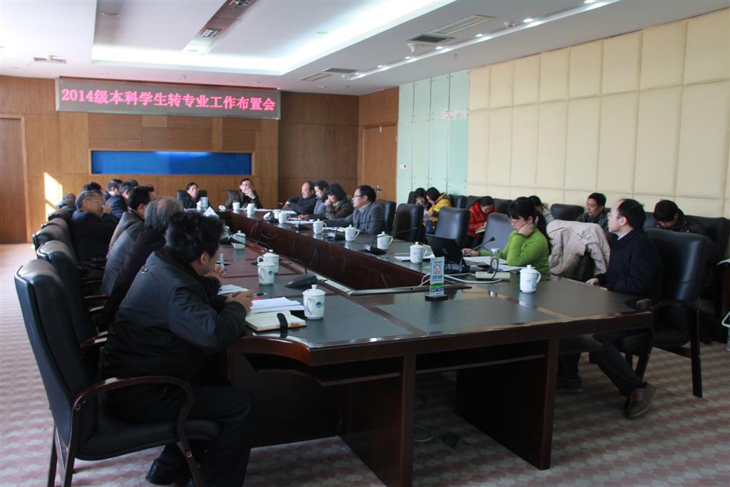 2014年12月30日下午2点30分,2014级本科生转专业工作布置会在办公楼第四会议室召开,会议由教务处处长张华主持,各学院教学院长、教务处蔡丹副处长及相关工作人员参加会议。