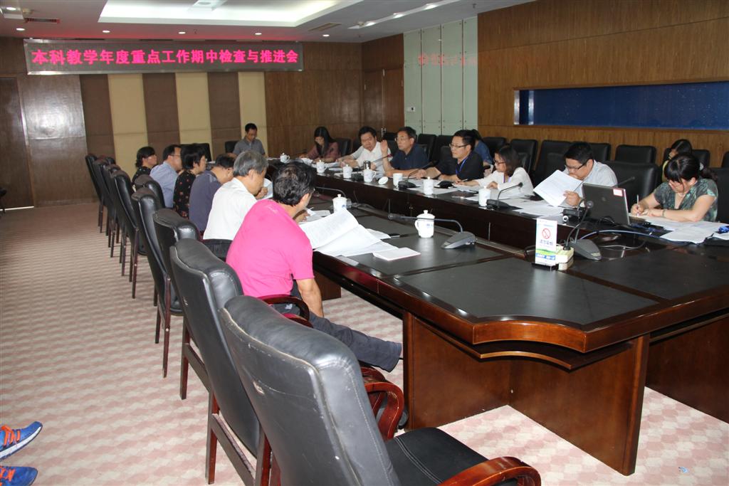 2015年6月3日下午2:30,在办公楼第三会议室召开本科教学年度重点工作期中检查与推进会,会议由教务处处长张华主持,朱友林副校长出席会议并讲话,教学督导与评估办、现代教育技术中心、前湖学院、教学督导组、教务处主要负责人及有关工作人员参加会议。