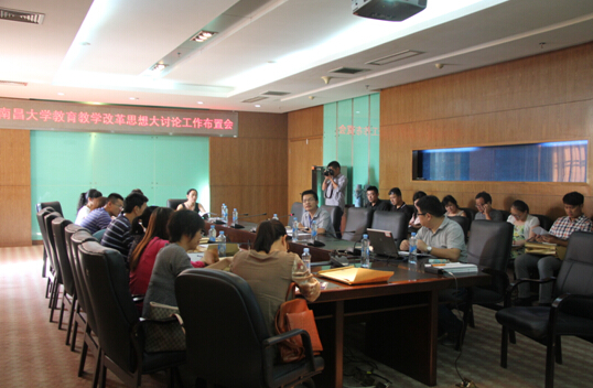 2015年9月16日下午3:00,在办公楼第二会议室召开了“教育教学改革思想大讨论”工作布置会。会议由校办朱旺力副主任主持,教务处徐健宁副处长、各学院办公室主任约30人出席会议。