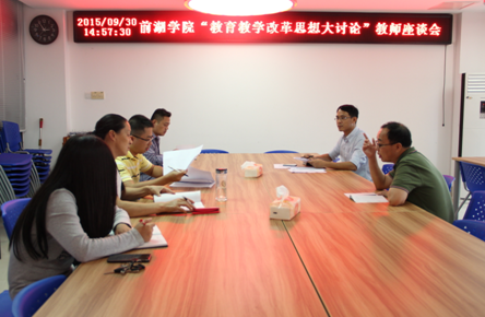 2015年9月30日下午,前湖学院在建工楼908会议室召开“教育教学改革思想大讨论” 教职工座谈会。