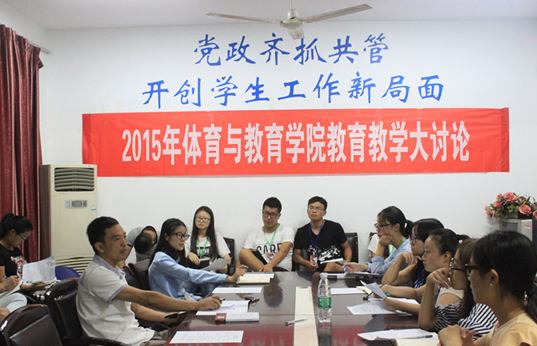 2015年9月28日晚,根据学院“教育教学改革思想大讨论”工作安排,体育与教育学院在学生公寓13栋一楼会议室召开了“体育与教育学院2015年教育教学改革思想大讨论学生座谈会”。会议由学院学生会主席团主持召开,各部门部长参与讨论,学院党委副书记刘光宇应邀出席会议。