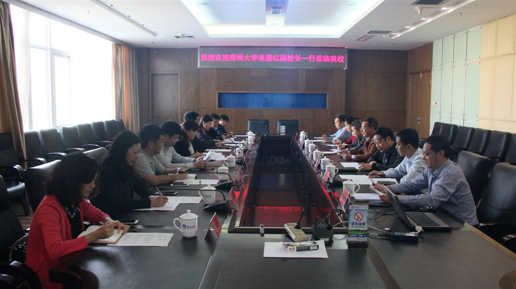 2015年10月15日上午9:30,郑州大学张倩红副校长等一行九人来我校访问交流。座谈会在办公楼第四会议室召开,会议由教务处张华处长主持,朱友林副校长出席会议并讲话交流,党委研究生工作部、团委、教务处、学工处、招就处、心理健康教育中心等部门负责人参加。