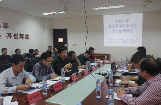 2015年10月14日下午2:00,材料科学与工程学院、信息工程学院、科技处、社科处、招就处、教务处联合召开了教育教学改革思想大讨论调研会议。副校长邓晓华、各参会单位负责人、教师代表等50余人参加了会议。会议由材料科学与工程学院院长王雨主持。