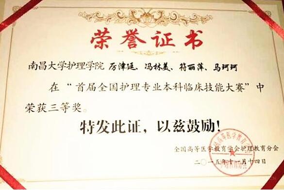 2015年11月13至14日,首届全国护理专业本科临床技能大赛举行。南昌大学代表队荣获此次比赛团体三等奖。