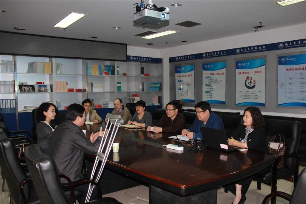 2016年4月14日中午13:30,在办公楼101会议室,我校教务处处长张华接待了江西科技师范大学教务处处长段先志、副处长徐艳来访一行,参加接待的还有督评办主任兼教务处副处长蔡丹、教务处副处长郑莉萍、肖教燎、徐健宁等。