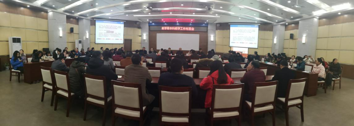 2019年2月25日上午,新学期本科教学工作布置会在前湖校区办公楼二楼报告厅顺利召开。朱友林副校长出席,现代教育技术中心、教学督导与评估办公室及创新创业学院负责人、各学院(部)分管教学工作副院长及教务办主任、教务处副科级以上干部100余人参加会议。